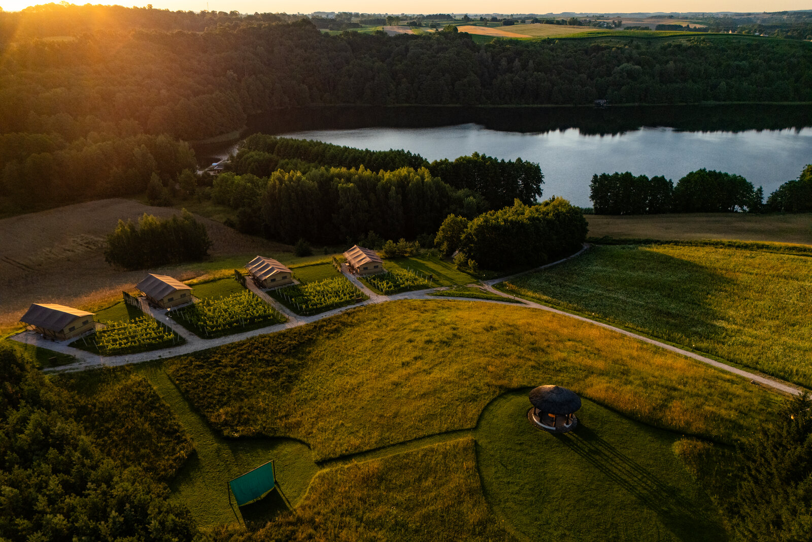 W głównym budynku znajduje się restauracja, oranżeria i strefa Vine SPA. Pokoje z widokiem na jezioro i tarasami to dobry wybór na leniwe poranki. W Winnicy II dominuje nowoczesny styl i widoki na staw, a w Osadzie – przytulność i naturalne materiały. Glamping to z kolei opcja dla tych, którzy chcą być jeszcze bliżej natury, ale bez rezygnacji z komfortu.