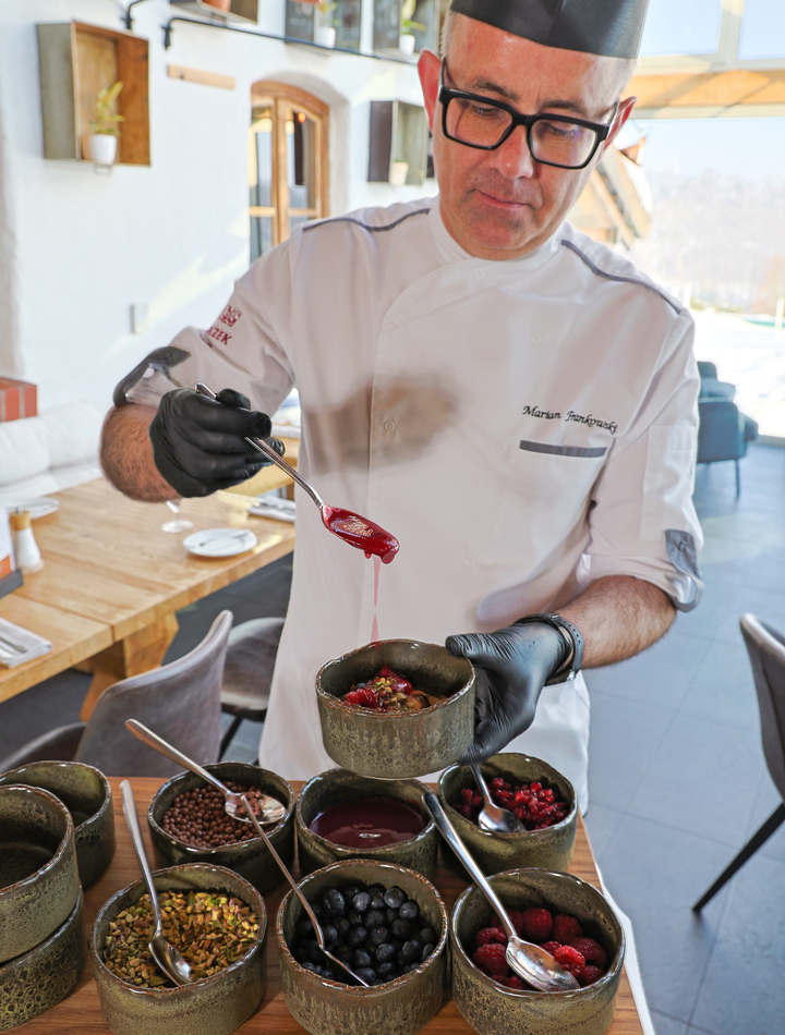 Nasze menu oparte jest na sezonowych produktach od lokalnych dostawców. Jego kształt zmienia się wielokrotnie wraz z porami roku. Zachęcamy do zapoznania się z przykładowym menu.